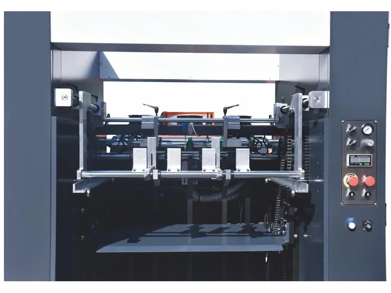 - Nivelator de hârtie fotoelectric pneumatic pe două fețe și hârtie puternică plată și lentă; Dispozitiv intermediar pentru a preveni eliberarea inerției hârtiei groase; Rază medie pentru a asigura o primire lină și ordonată a hârtiei.